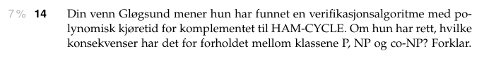 Klassen NP er problemer der ja-svar kan verifiseres i polynomisk tid.